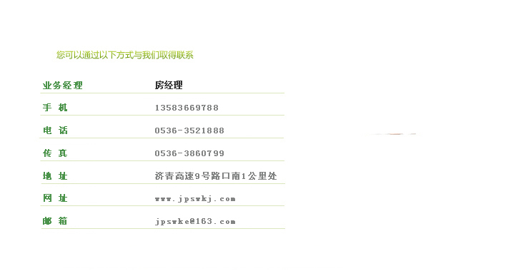 电 话:0536-3521888 业务电话:13583669788 地 址:山东省潍坊市青州市