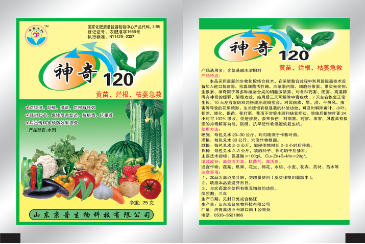 液体:25mlx50袋x6盒/箱产品通用名:含氨基酸水溶肥料执行标准:NY1429-2007登记证号:农肥准字1666号##化肥质量监督检验中心产品代码:3195 产品形态:水剂净重:25ML主要指标:氨基酸≥100g/L Cu+Zn+B+Mo≥20g/L增效成分:##活力素 ****剂 ****剂